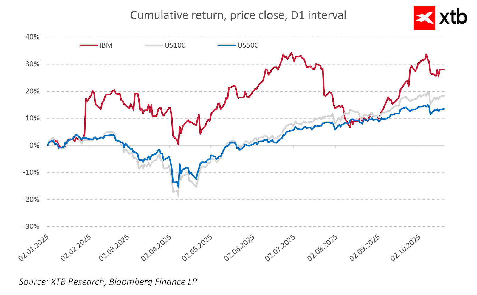 IBM đang đầu tư mạnh mẽ vào AI và công nghệ lượng tử, vốn có thể trở thành động lực tăng trưởng mới và năm nay công ty đang có hiệu suất vượt trội so với các chỉ số chính của thị trường chứng khoán.